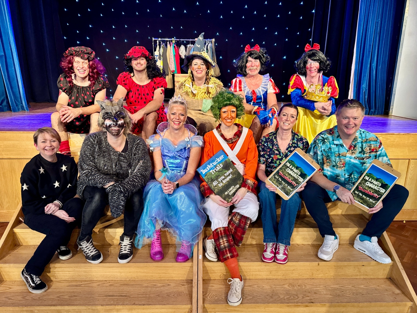 This year’s original production, I’m a Panto Character – Get Me Out of Here!, was set in the back of the Crookhorn Costume Cupboard (which is like a jungle!), where eight pantomime and fairytale characters competed to be crowned King or Queen.
