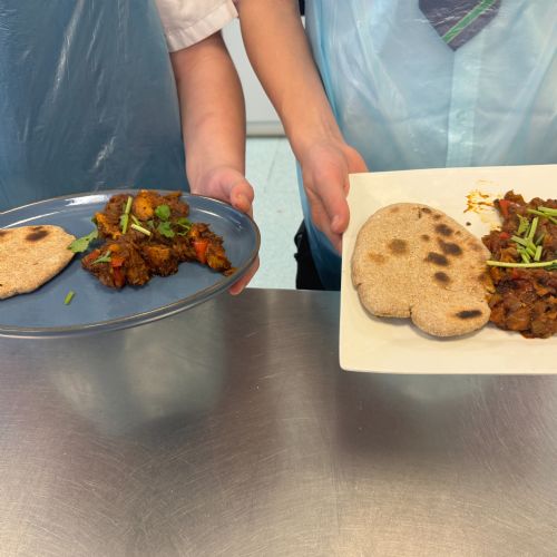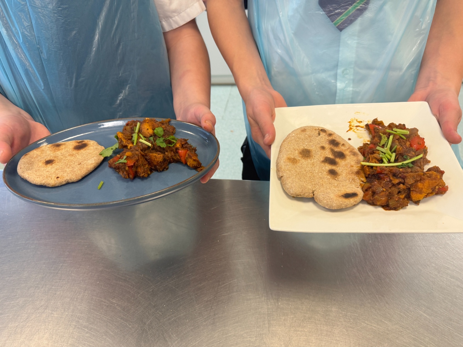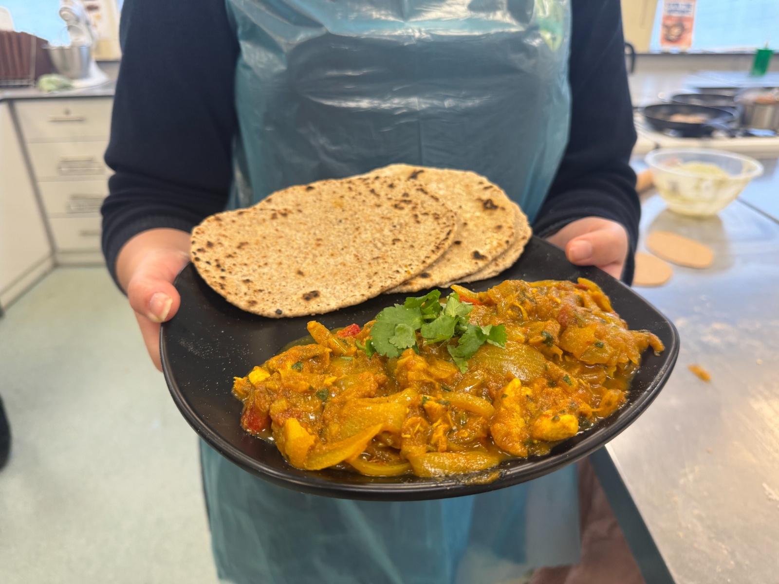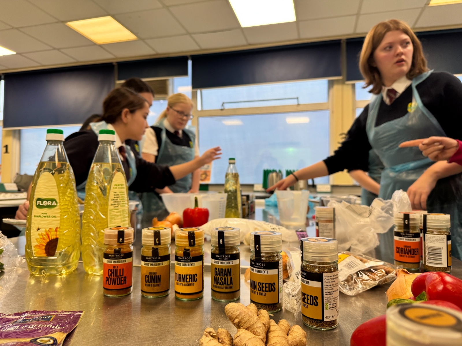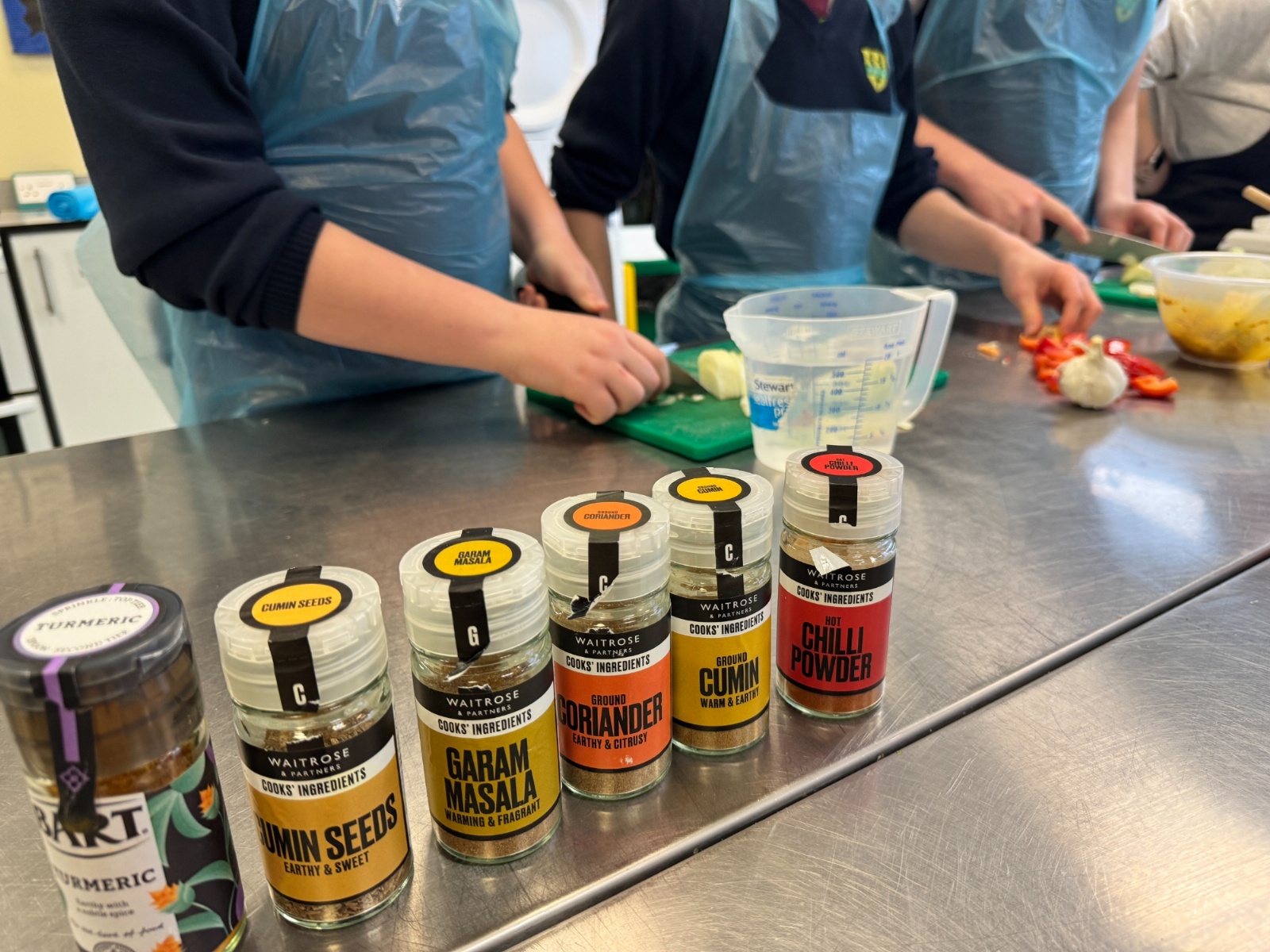 Throughout the day, students learnt how to make chicken curries and chapatis from scratch, developing practical cooking skills and exploring the flavours of Indian and Pakistani cuisine. All ingredients were generously provided by Waitrose, allowing students to focus fully on learning and creativity in the kitchen.