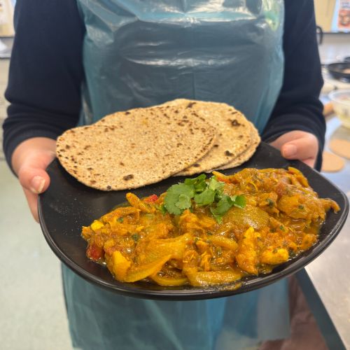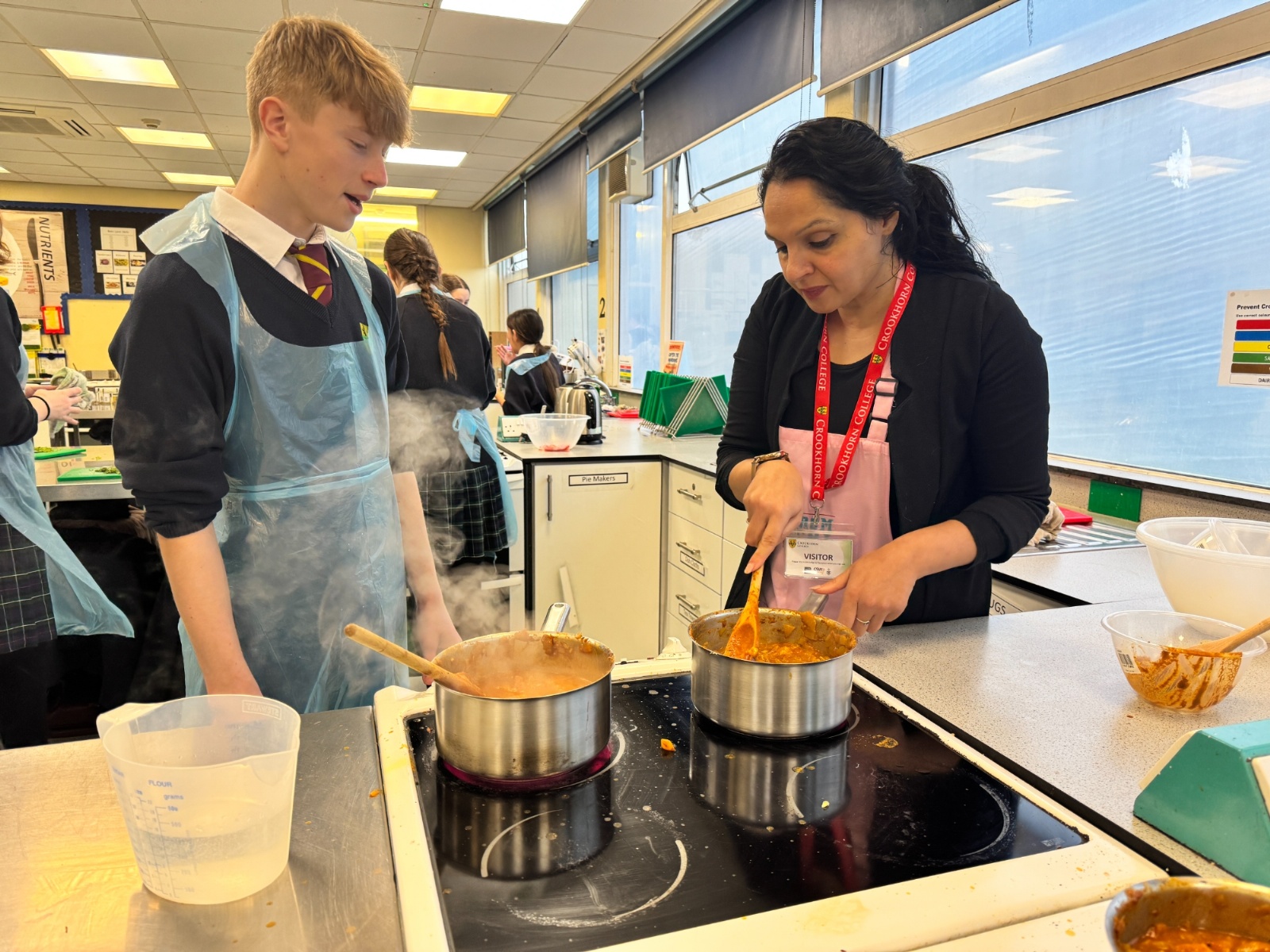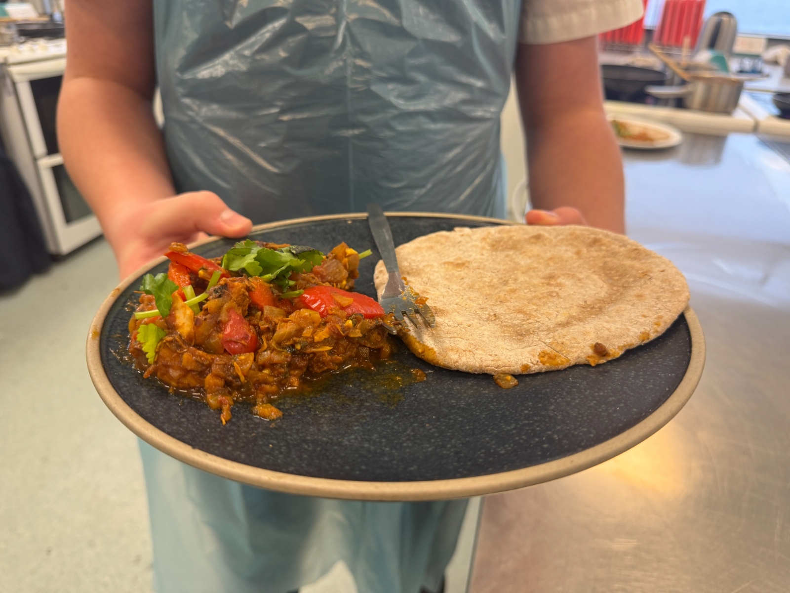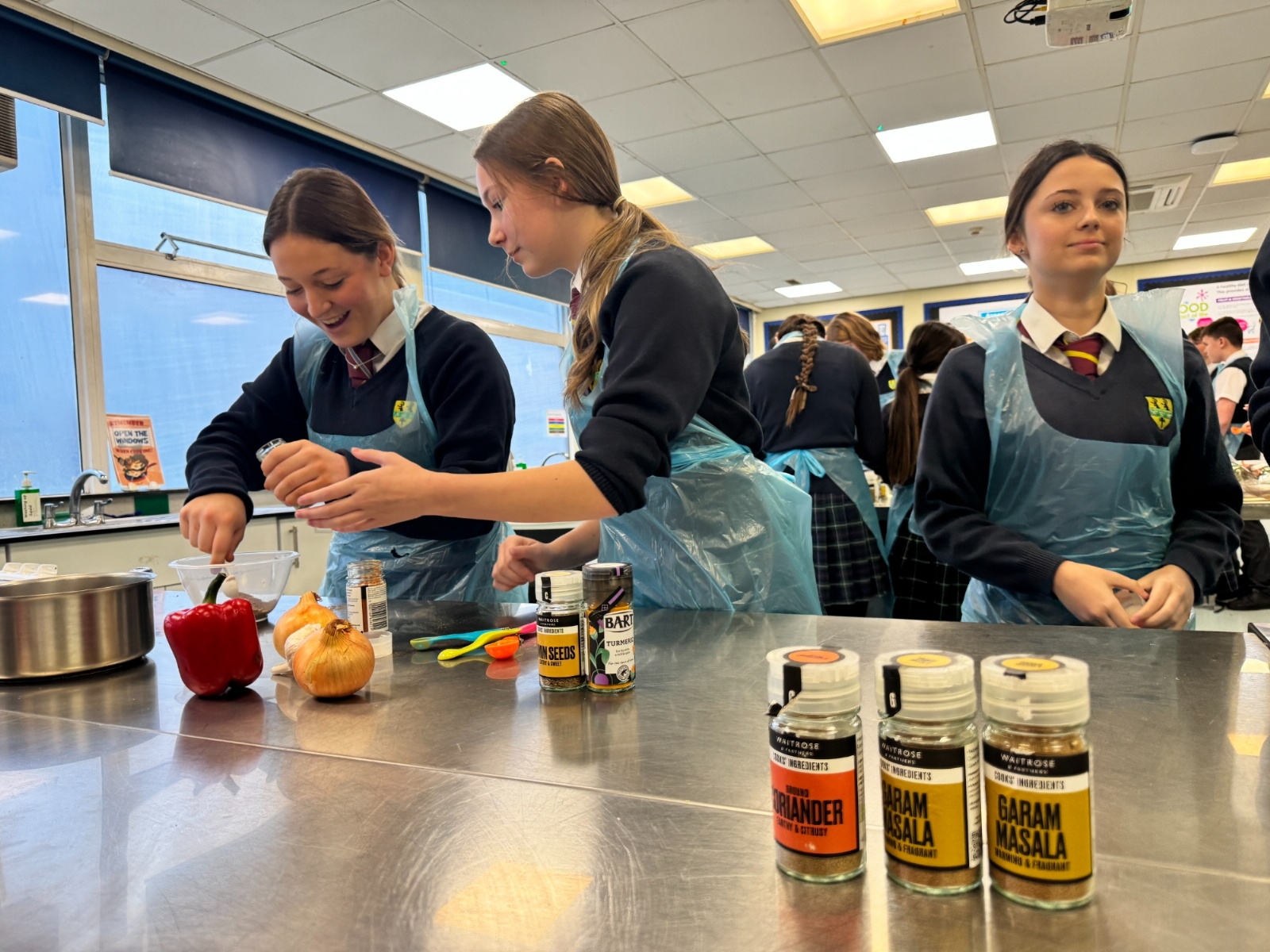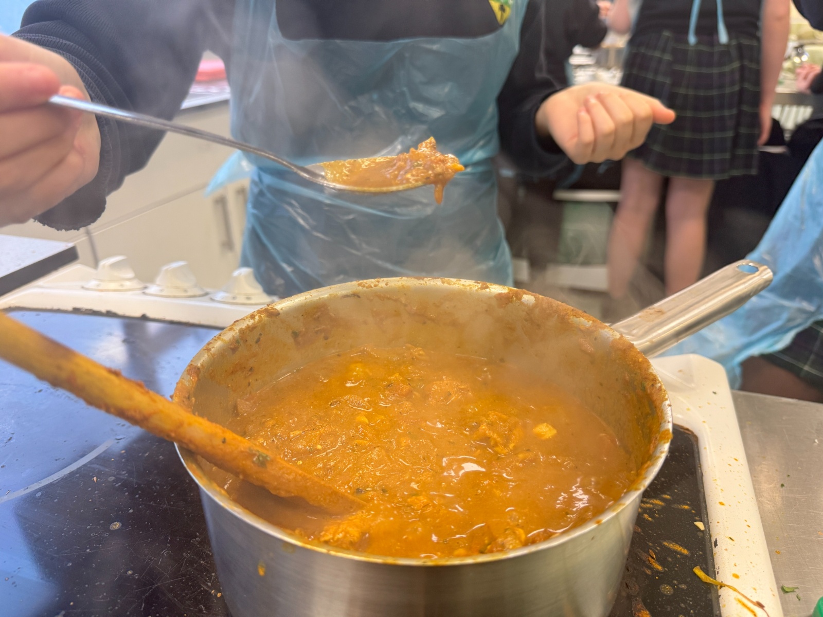 Throughout the day, students learnt how to make chicken curries and chapatis from scratch, developing practical cooking skills and exploring the flavours of Indian and Pakistani cuisine. All ingredients were generously provided by Waitrose, allowing students to focus fully on learning and creativity in the kitchen.