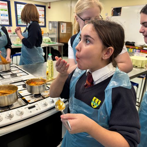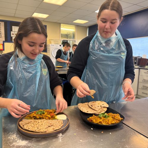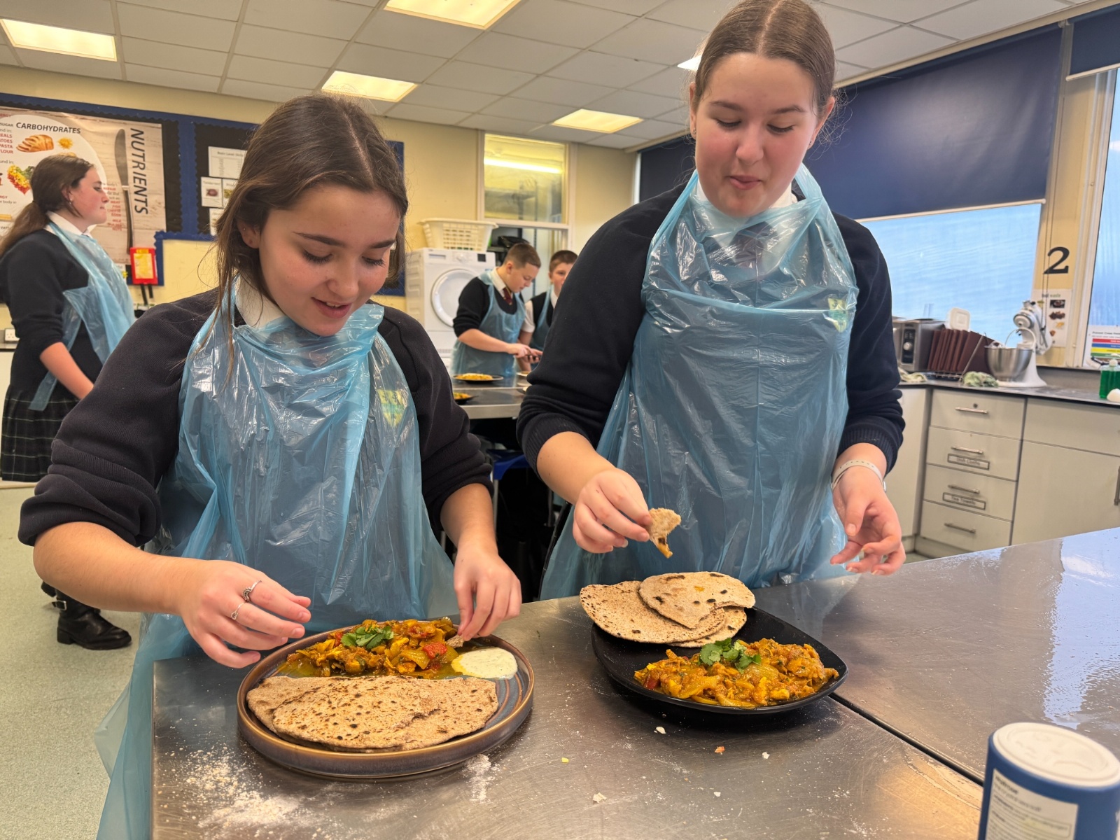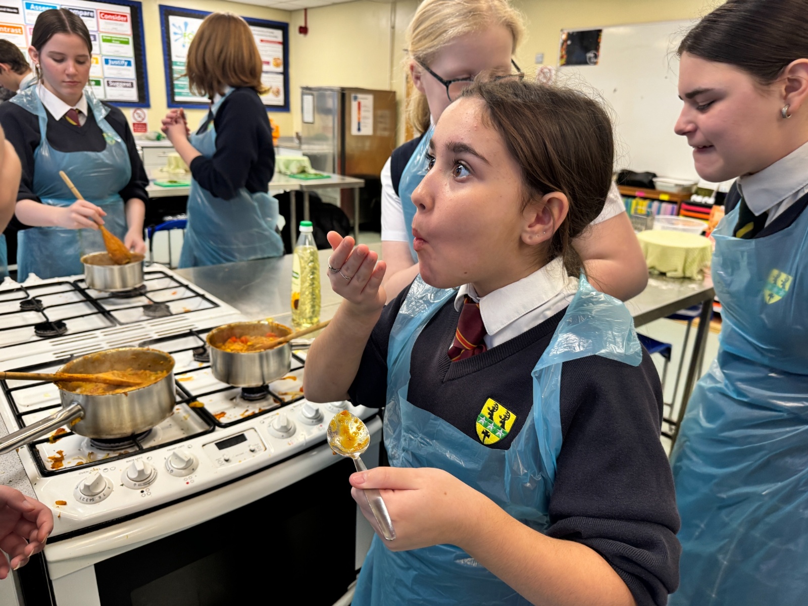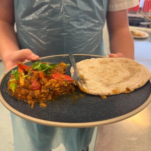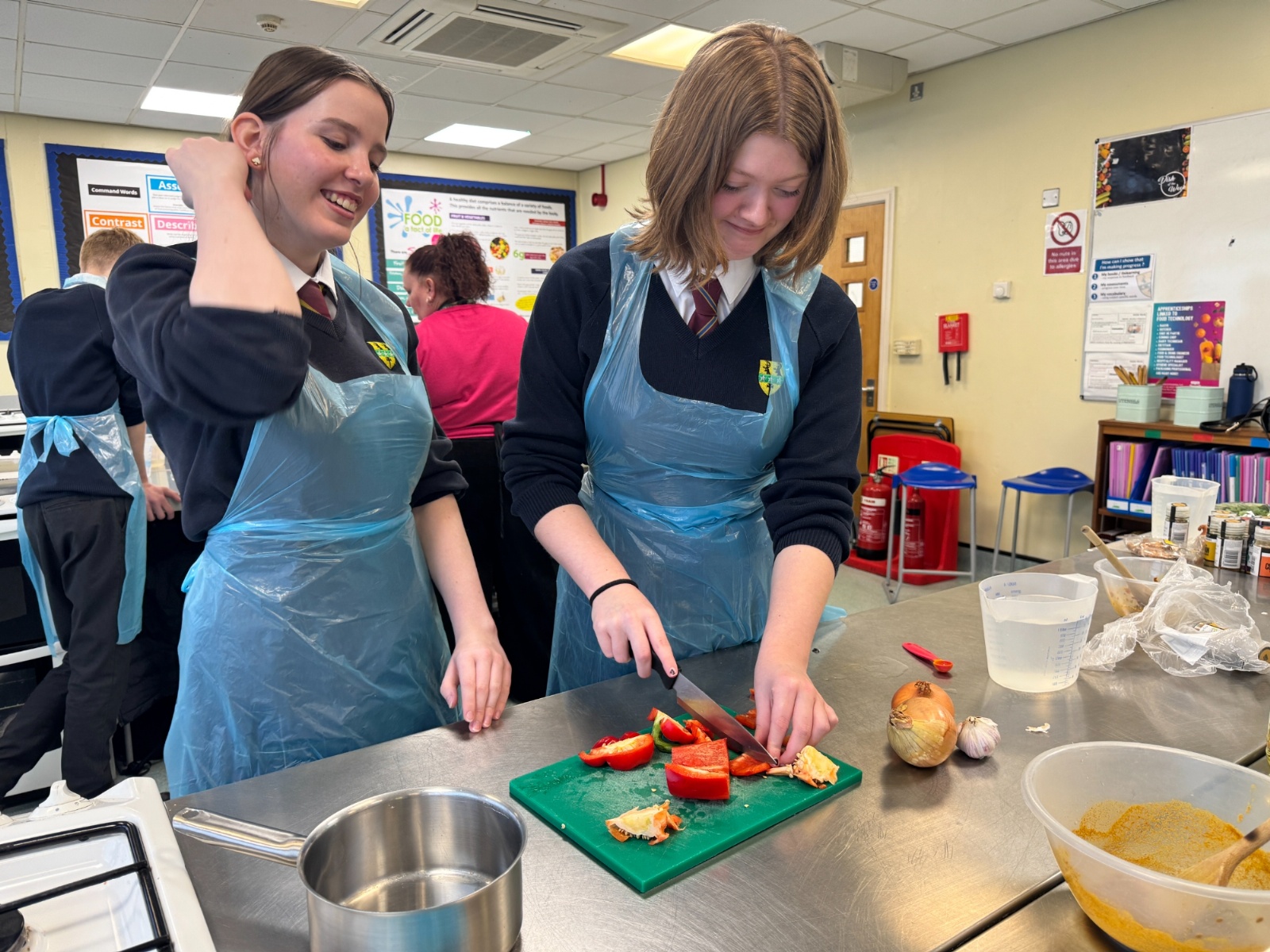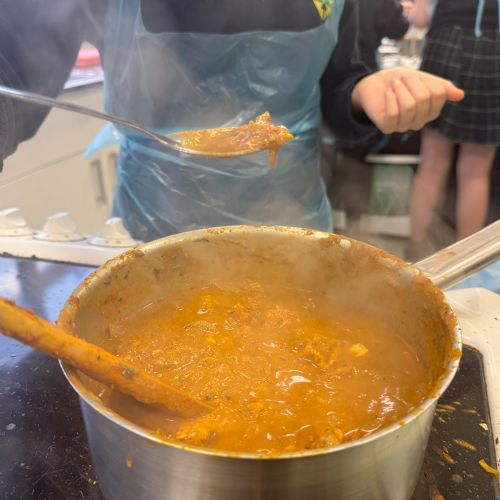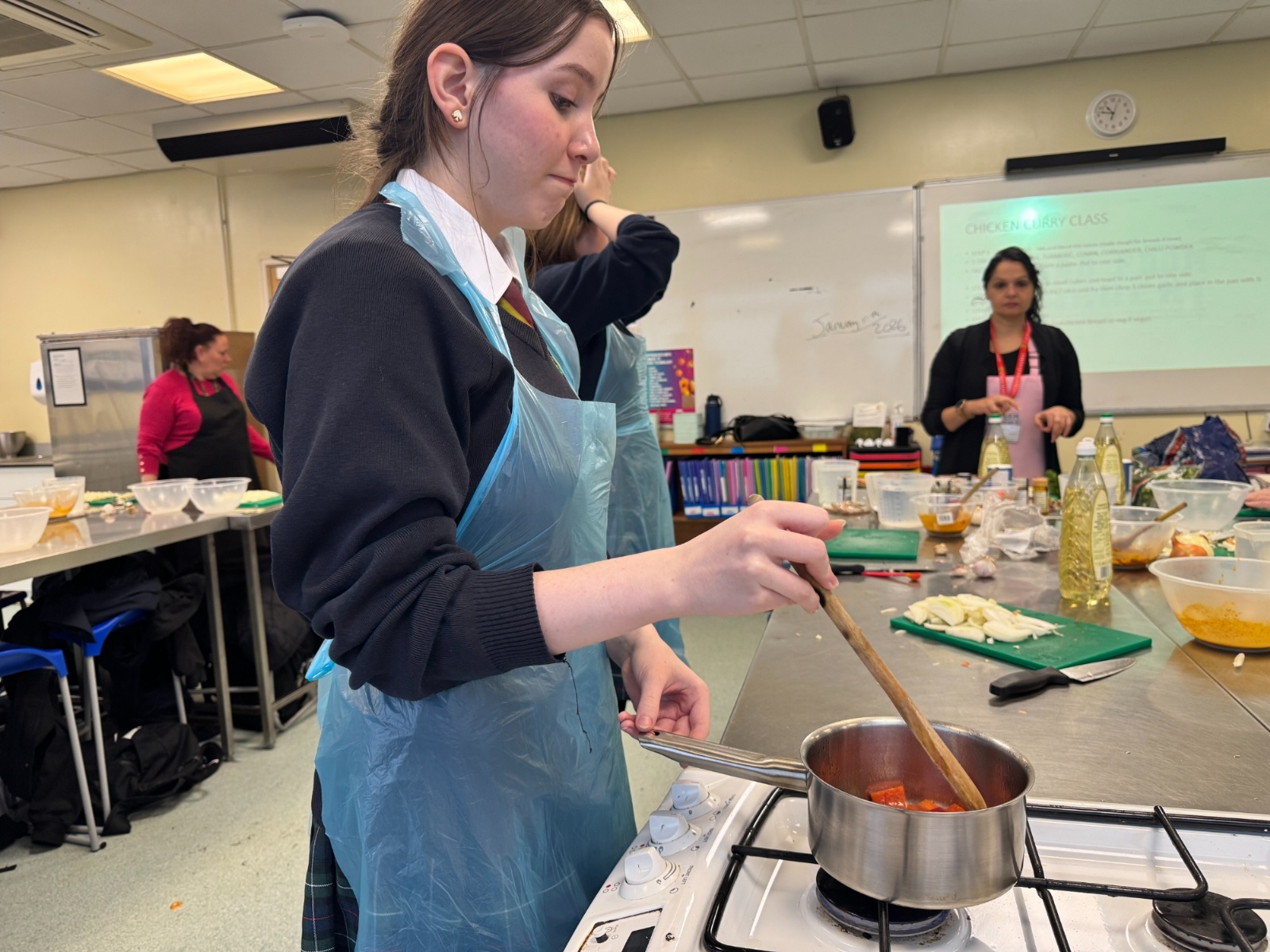 Throughout the day, students learnt how to make chicken curries and chapatis from scratch, developing practical cooking skills and exploring the flavours of Indian and Pakistani cuisine. All ingredients were generously provided by Waitrose, allowing students to focus fully on learning and creativity in the kitchen.
