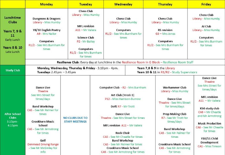 Please see below the timetables for Sports Clubs and Subject & Hobbies Clubs we are running this half-term: